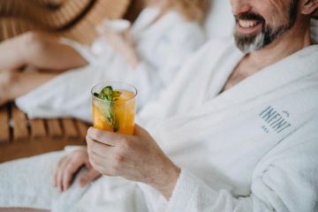 There are three bars in the wellness area that will make your stay more enjoyable. Two fresh bars are ideal for a short break and a relaxing session. The menu includes light snacks such as soups, sandwiches, tortillas, salads, sandwiches, sweet treats, homemade lemonades, non-alcoholic refreshments and light alcoholic drinks. A truly unique feature is the swim-up bar, which is open all year round right in the pool and allows you to enjoy a drink in the water.
