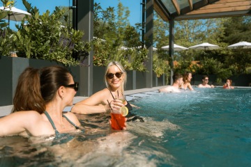 Directly in the thermal pool, you’ll find the Swim-up Bar, where you can order your favorite drink while still enjoying relaxation in the bubbling water.