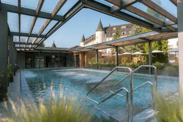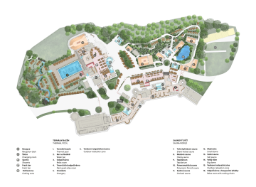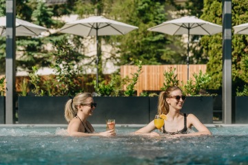 Přímo v termálním bazénu se nachází Bar na hladině, z kterého si můžete objednat váš oblíbený nápoj, zatímco si stále užíváte relax ve vodě plné bublinek.