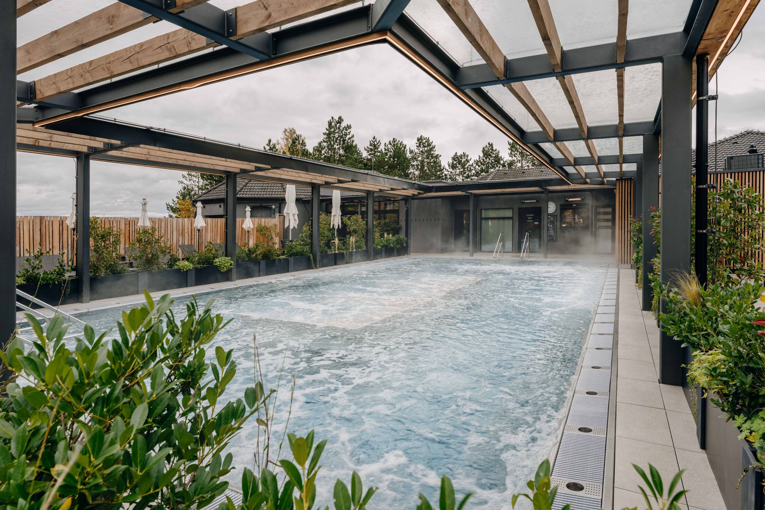 Vedle bazénu se nachází prostorná panoramatická odpočívárna s pohodlnými lehátky, ze kterých si můžete vychutnat výhled na novou ceremoniální saunu. Atmosféru doplňují všudypřítomné rostliny, svícny a příjemná vůně.