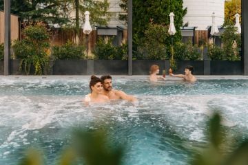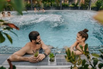 Přímo v termálním bazénu se nachází Bar na hladině, z kterého si můžete objednat váš oblíbený nápoj, zatímco si stále užíváte relax ve vodě plné bublinek.
